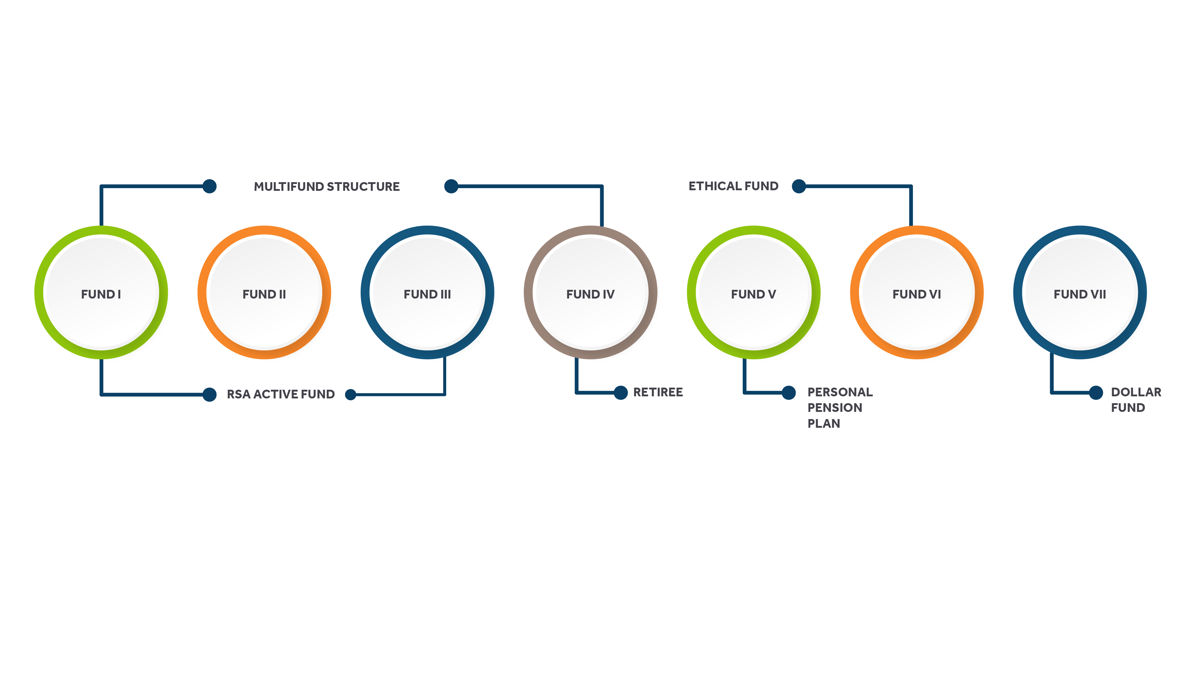 Multi-Fund structure is a framework that aims to match your age and risk profile to one of four distinct RSA funds – i.e. three RSA Fund types for active contributors and one Retiree Fund for retired contributors.